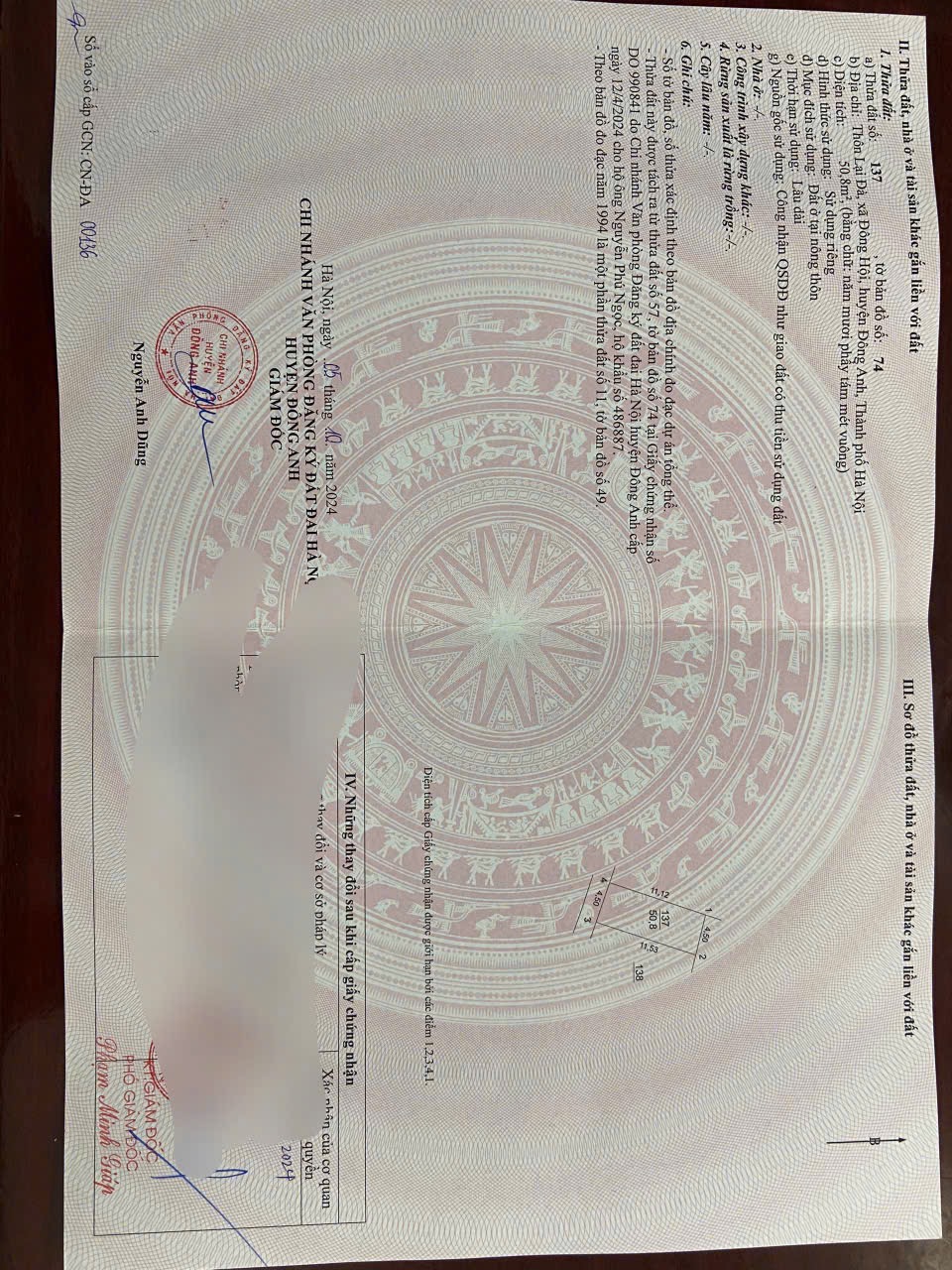 Cần bán 50,8m2(4,5×11,3) đất Lại Đà Đông Hội Đông Anh đường rộng 2,8m hướng Tây Nam vị trí cách cầu Đông Trù 500m cách trung tâm hội chợ triển lãm quốc gia và khu đô thị mới Vinhome Cổ Loa 800m giá 105tr triệu