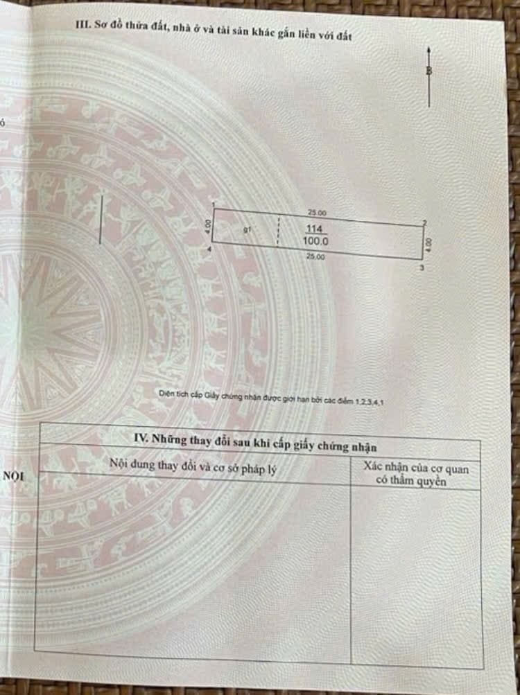 - Diện tích: 100m² (mặt tiền 4m, chiều dài 25m)