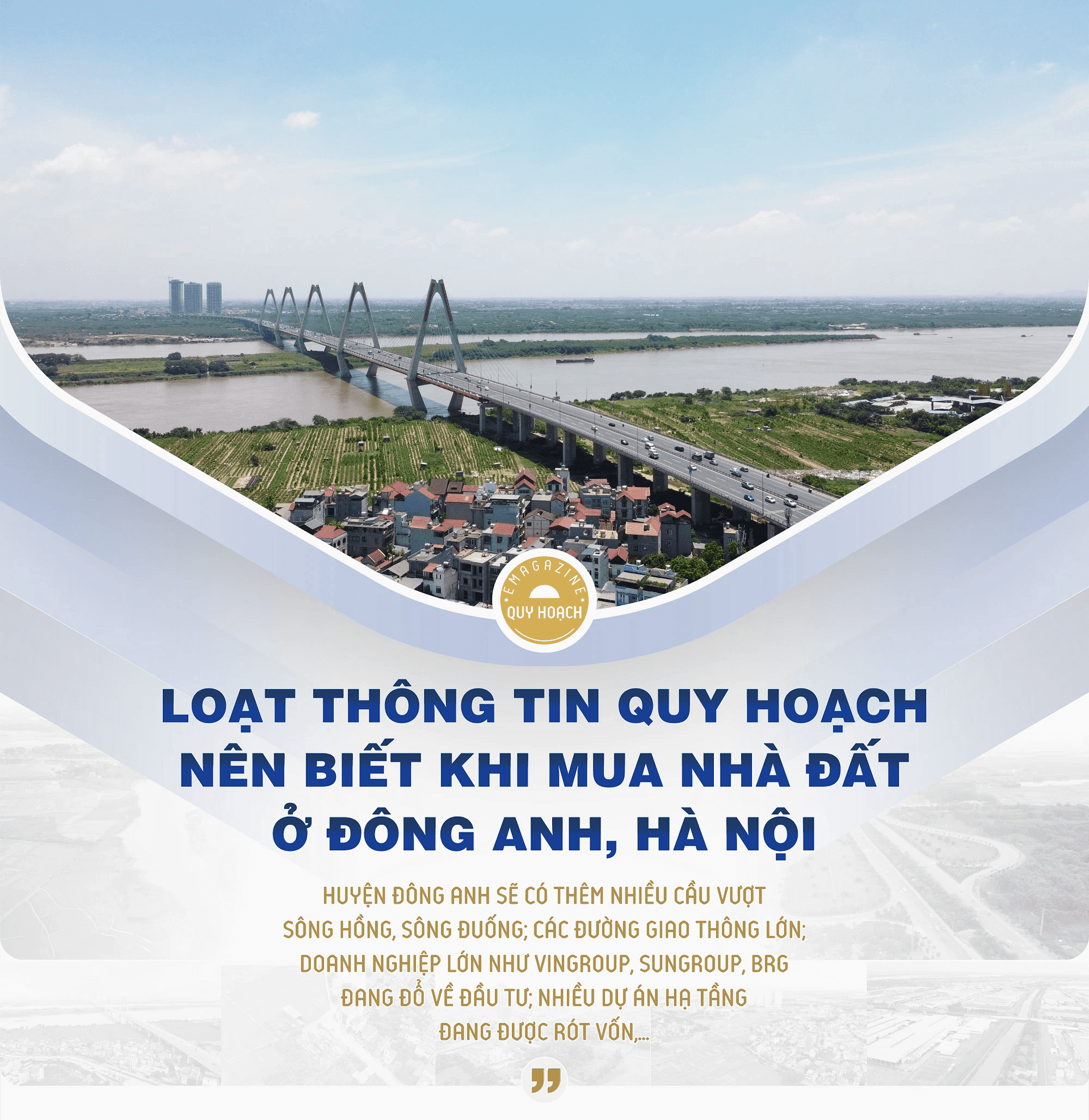 Ngoài việc thu hút các dự án lớn, cơ sở hạ tầng cũng là một trong những mấu chốt khiến bất động sản Đông Anh tăng nhiệt. Khu vực này có nhiều dự án xây dựng hệ thống cầu, đường chuẩn bị triển khai.