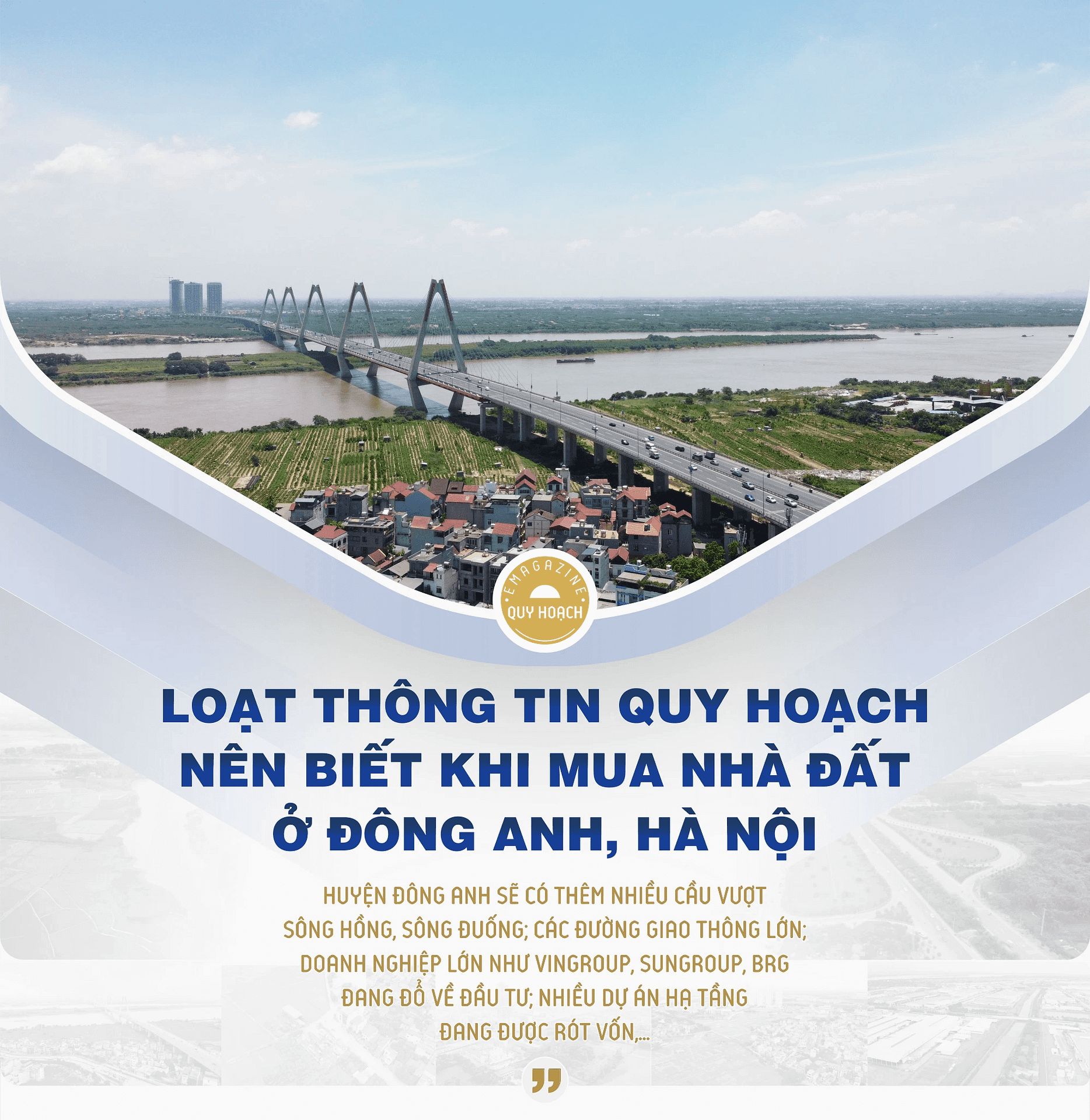 Ngoài việc thu hút các dự án lớn, cơ sở hạ tầng cũng là một trong những mấu chốt khiến bất động sản Đông Anh tăng nhiệt. Khu vực này có nhiều dự án xây dựng hệ thống cầu, đường chuẩn bị triển khai.
