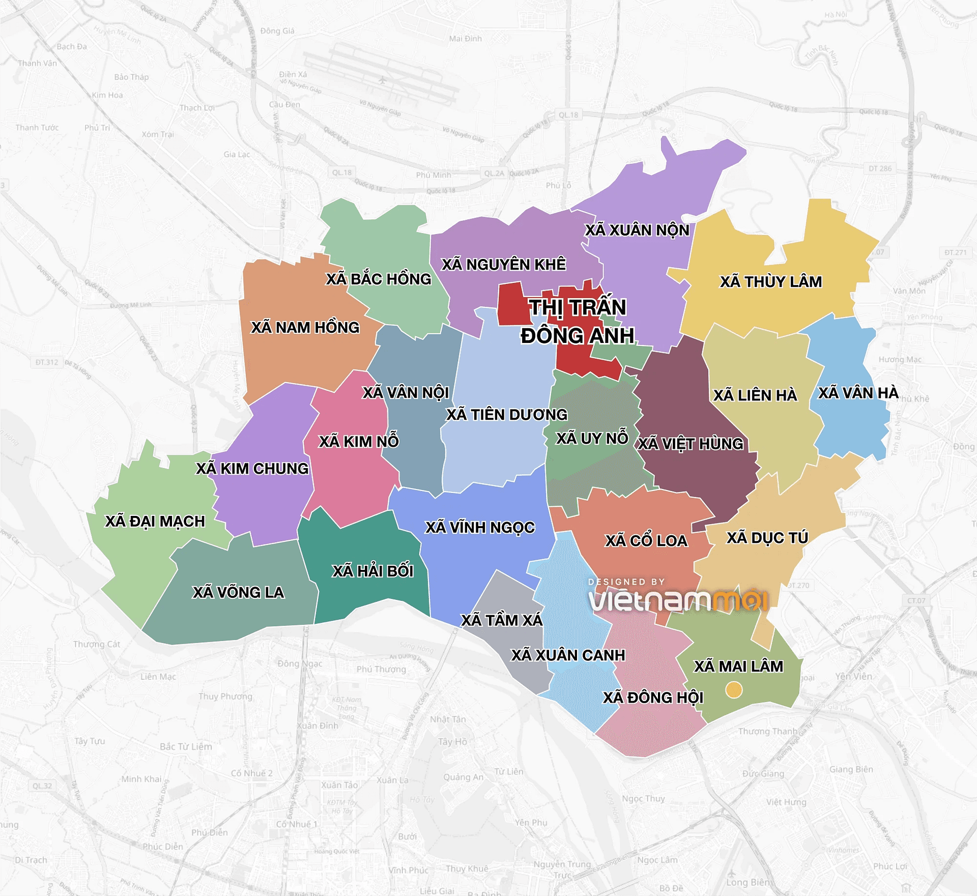 Vị trí xây dựng một số dự án lớn tại Đông Anh. (Đồ họa: Justin Bui).