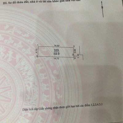 Thông tin bất động sản: Diện tích đất: 59m² (ngang 4m × dài 14,8m) Vị trí: Thôn Đông Trù, xã Đông Hội, huyện Đông Anh, Hà Nội Đường rộng: 2,4m Hướng: Đông…